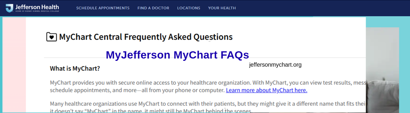 Jefferson MyChart is your secure, online health management tool. It’s your personal window into your medical records and a direct line to your Jefferson Health care team. You can use it to see test results, message your doctor, schedule appointments, pay bills, and more—all from your computer or phone.